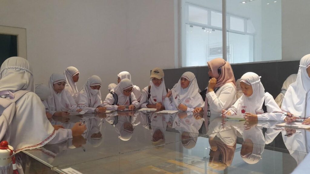 Selama berada di museum, para siswi tidak hanya melihat koleksi, tetapi juga aktif bertanya kepada pemandu. Masing-masing dari mereka membawa lembar kerja yang harus diisi sebagai bagian dari penilaian mereka.